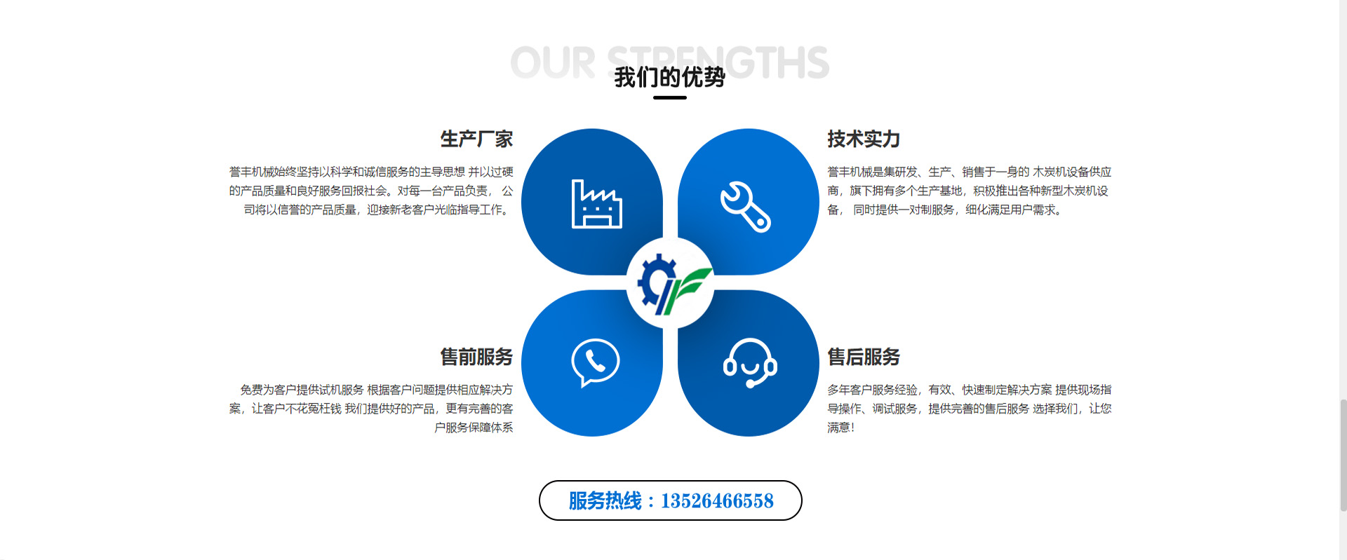 公司介紹鞏義市譽(yù)豐機(jī)械科技有限公司位于河南省鞏義市,制造木炭機(jī)、木炭機(jī)設(shè)備、和木炭機(jī)價(jià)格的專(zhuān)業(yè)木炭機(jī)廠(chǎng)家,質(zhì)量好,價(jià)格優(yōu),企業(yè)集科、工、貿(mào)為一體的大型機(jī)械設(shè)備制造企業(yè),在機(jī)械設(shè)備行業(yè)中產(chǎn)銷(xiāo)量及各項(xiàng)綜合經(jīng)濟(jì)指標(biāo)都較好。 “虔誠(chéng)、精細(xì)、嚴(yán)密、和諧”,譽(yù)豐正以不渝的企業(yè)精神,詮釋著前行的足跡,昭示著決勝未來(lái)的信念。始終如一地追求極品、創(chuàng)造典范,譽(yù)豐人將為用戶(hù)提供更多的高品質(zhì)產(chǎn)品和服務(wù).